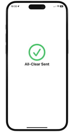 4. After tapping "Send," a green check mark will appear on the screen, and you will be sent back to WorkerSafety Pro's home screen. Emergency contacts will also be notified that the “all clear” has been sent by you and that help is no longer needed.