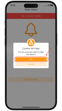 2. Confirm the All Clear by tapping "Yes" on the next screen.