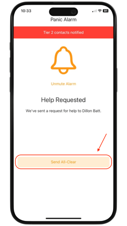 For alarms that have already sent out notifications to your emergency contacts but are still open: