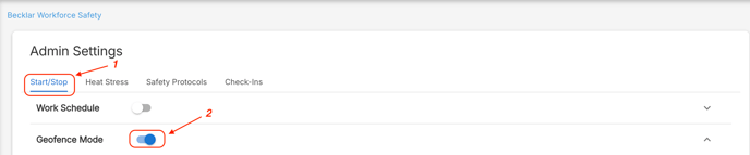 - Click on "Start/Stop," then toggle the "Geofence Mode" switch to enable it.