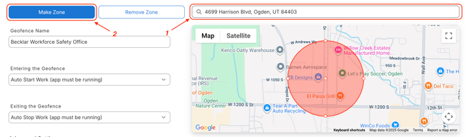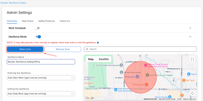 - Click on "Make Zone" to display the Geofence circle on the map.