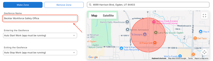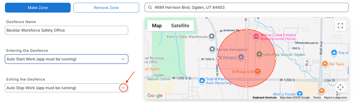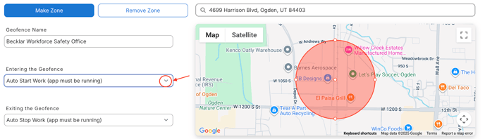 Note: The WorkerSafety Pro app must be running in the background for work to Auto-Start/Stop based on the geofence.