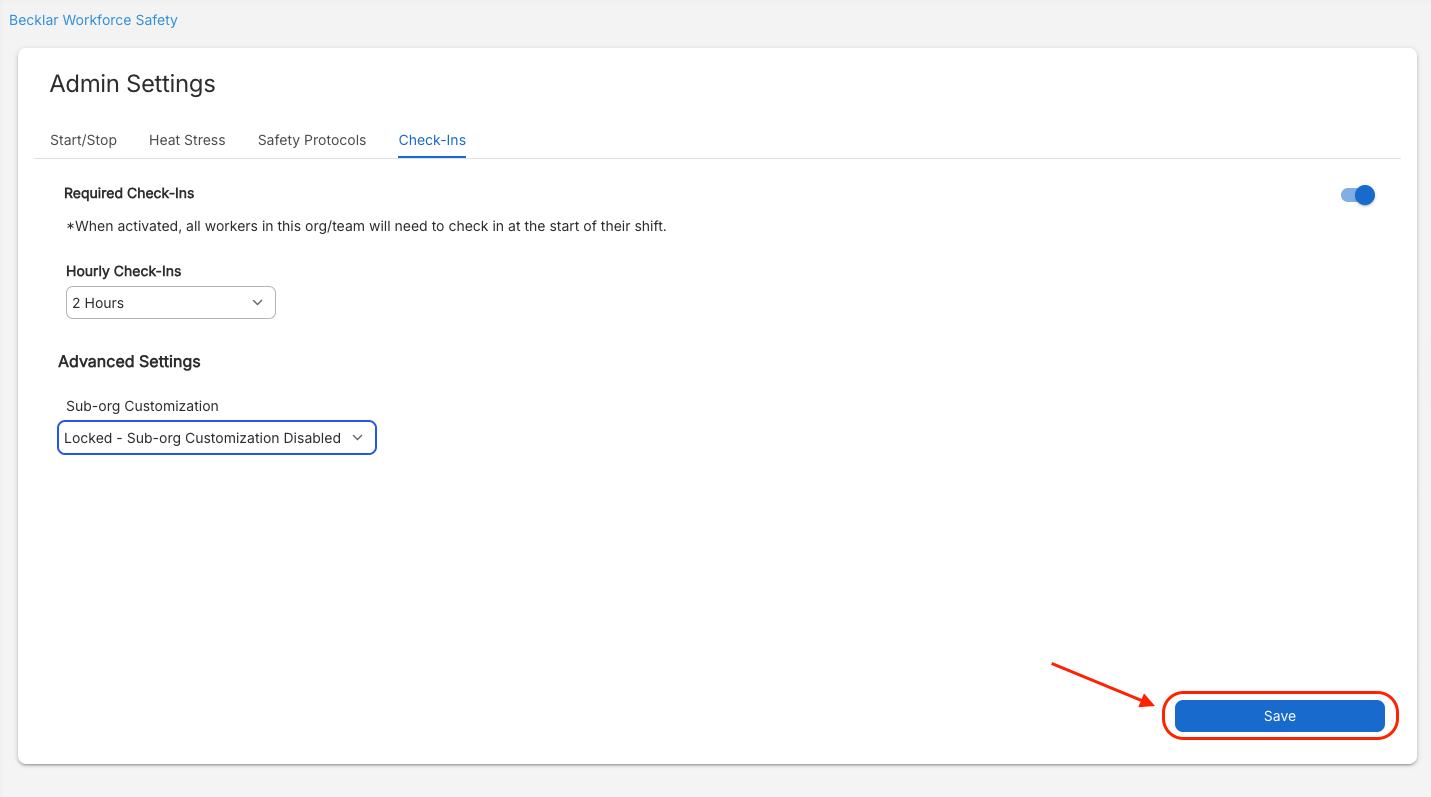 A supervisor or admin will need to configure the required check-in settings on the Workforce Safety Portal to enable that functionality in the WorkerSafety Pro app.