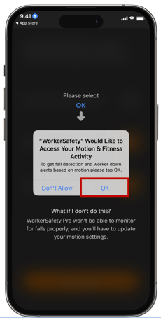 Please tap Always Allow, OK, or Allow for all requested permissions. This ensures that WorkerSafety Pro runs properly.