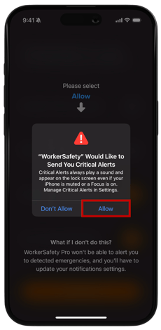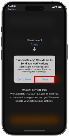 Select “Allow” so that WorkerSafety Pro can send you notifications.