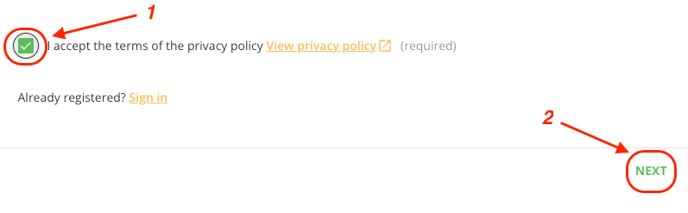 3. Click to check the box next to "I accept the terms of the privacy policy." Then, click "NEXT."