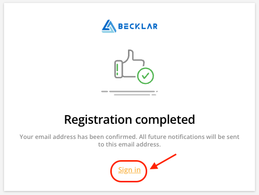 6. After clicking the registration request link sent to your email, your registration will then be completed. Click the "Sign in" button on the next screen.