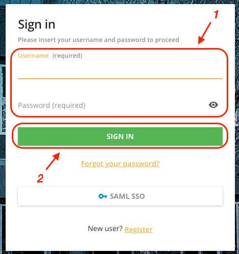 7. On the next screen, enter the username and password you used to create your account. Then, click the "SIGN IN" button. You will be taken to the Dashboard! (It may take about 10 seconds for the dashboard to load the first time to sign in)