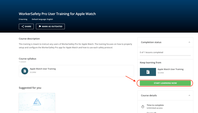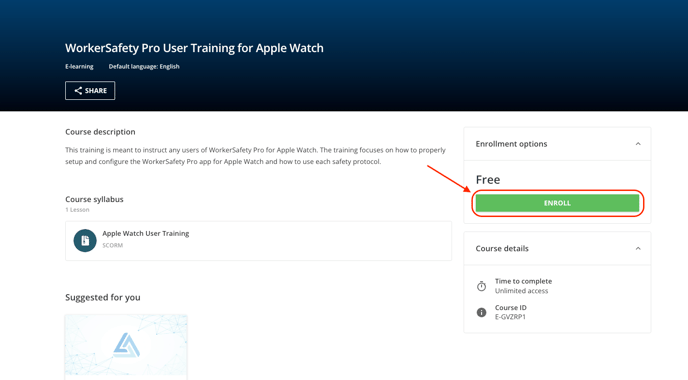 8. On the dashboard, scroll down and click on the training you would like to take.